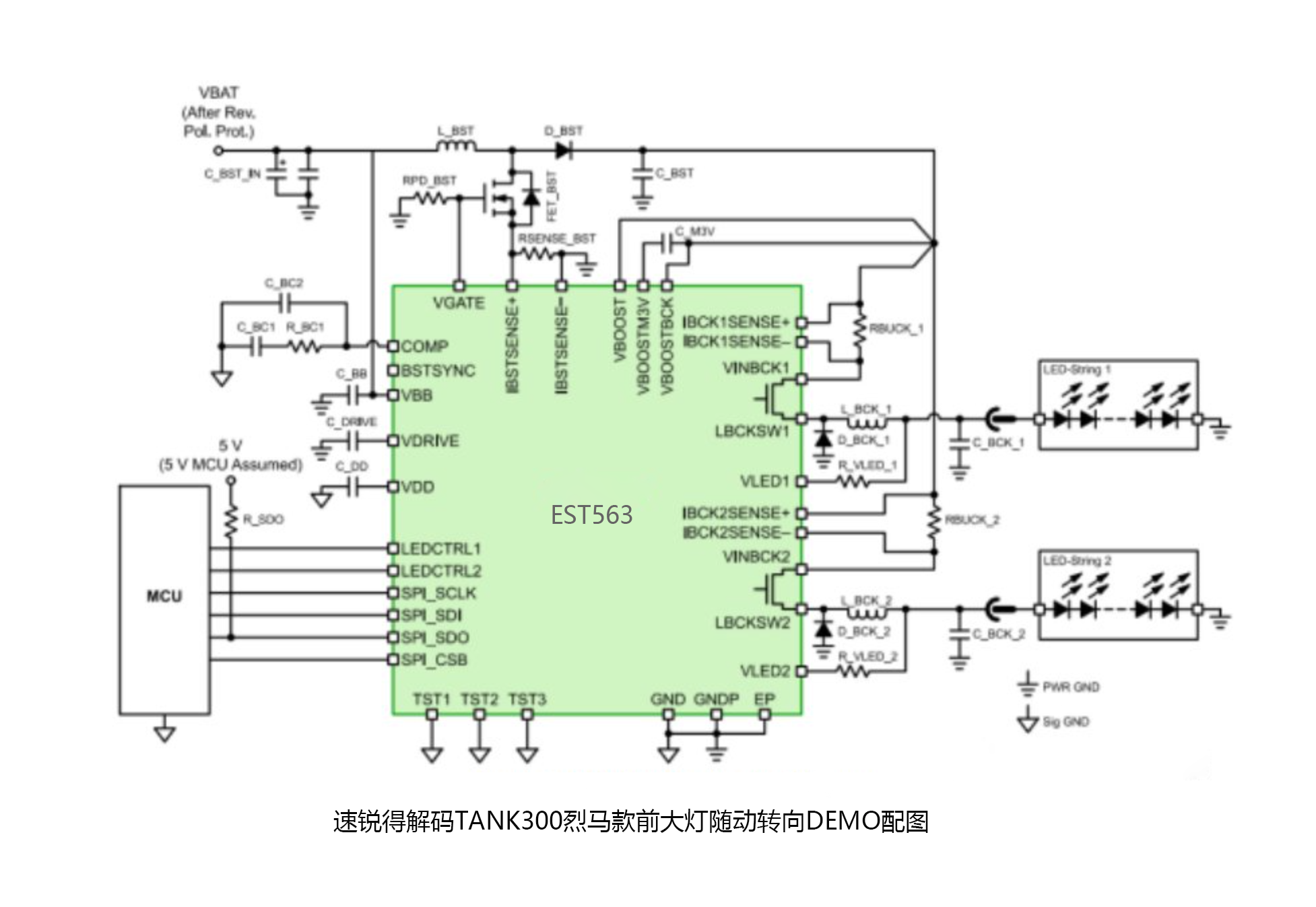 為了實(shí)現(xiàn)視頻功能,速銳得設(shè)計(jì)了一種結(jié)構(gòu)緊湊的光學(xué)控制組件,包括了LED控制輸出,可以控制轉(zhuǎn)向電機(jī),就是俗稱的電機(jī)驅(qū)動(dòng)板,再到控制燈的透鏡,這個(gè)控制器通過(guò)汽車CAN總線上的方向盤(pán)轉(zhuǎn)向角度數(shù)據(jù)、電壓數(shù)據(jù)、點(diǎn)火數(shù)據(jù)及控制邏輯。整個(gè)組件包括了CAN互聯(lián)系統(tǒng)控制單元、頭燈控制單元、電機(jī)、PCBA、機(jī)械部件、LED、線纜、連接器、散熱片、熱傳感器、通風(fēng)扇、調(diào)節(jié)設(shè)定、測(cè)試工具及其他。
